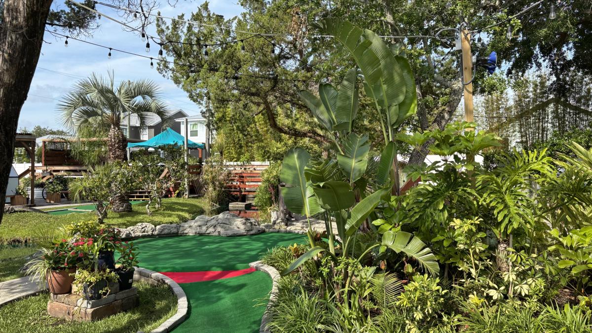 Anastasia Miniature Golf's creative and entertaining course winds through lush tropical landscaping, intersecting with waterways (stocked with Japanese koi) and fun diversions all along the way. The pirate theme includes "spooky" tunnels, waterfalls, and a pirate's humorous tips for each hole.