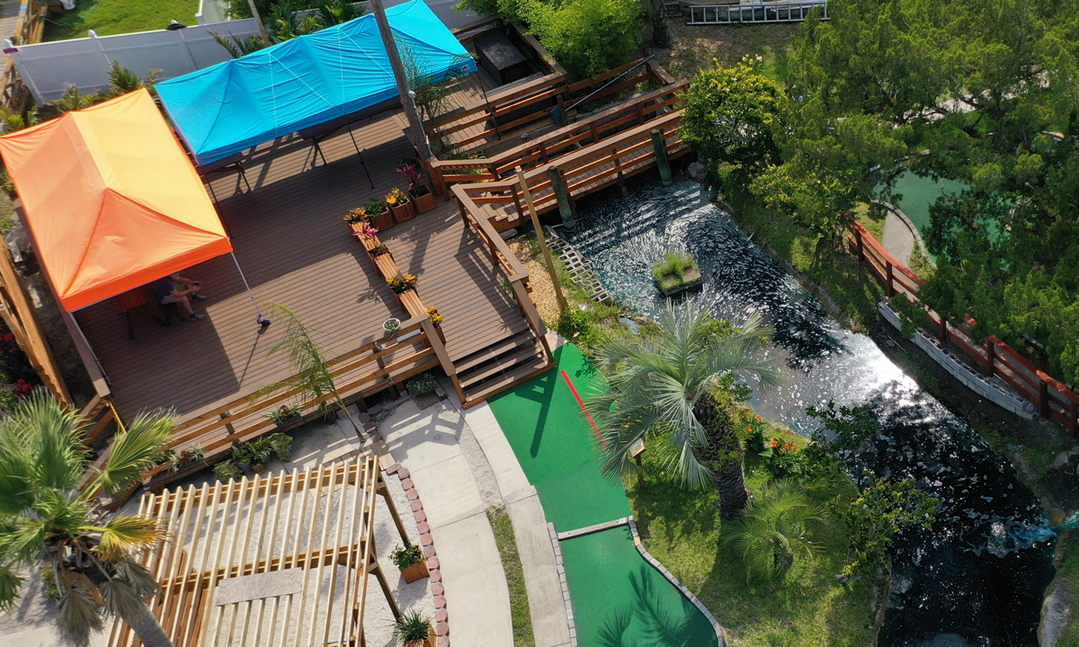 The deck has power, lighting, a sun shade, chairs, and tables. And, you can bring food to your party; Anastasia Golf will also serve beer and wine at your request. To learn more or to reserve the space, go here.