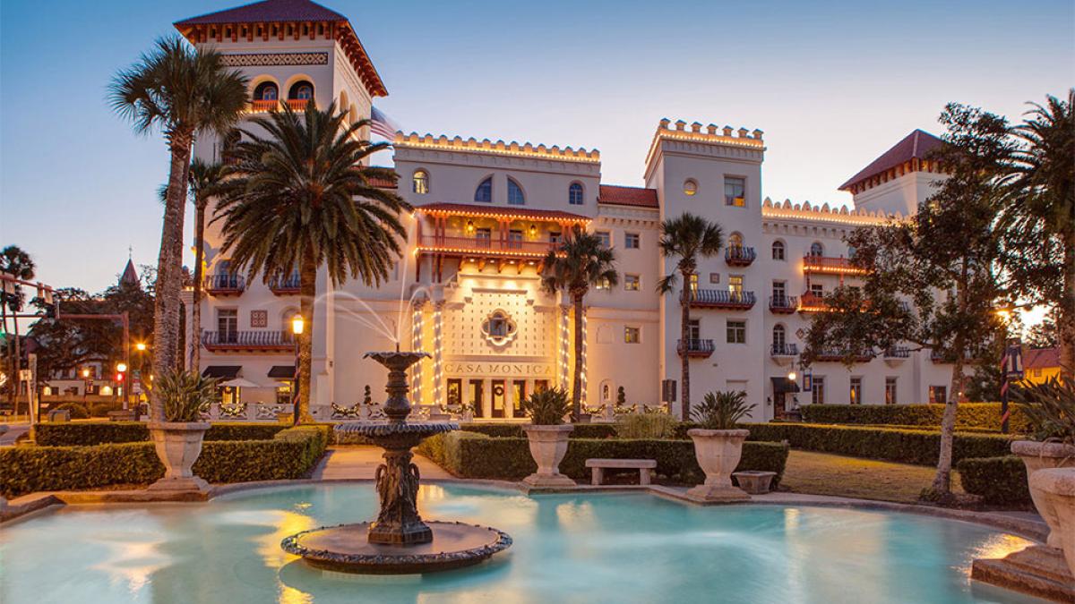 The Casa Monica Resort Spa in St. Augustine reigns as the only AAA Four Diamond-rated hotel in the city. This historic hotel with an opulent lobby, fountains, frescos, and chandeliers harkens to its turn-of-the-century origins. With 138 guest rooms and suites, three eating and drinking establishments, and event facilities, the hotel stays true to its Gilded-Age heritage. Eight one-bedroom suites offer cityscape views spacious seating areas, and wet bars.