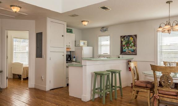 The two-bedroom waterfront cottages at Devil's Elbow are spacious, clean, and perfectly appointed for relaxing Florida vacations. Each features an "Old Florida" covered front porch, designed with relaxation in mind. The rental cottages have fully equipped kitchens with all the conveniences of home. Gas grills are located close by in case an outdoor barbecue is on the agenda.