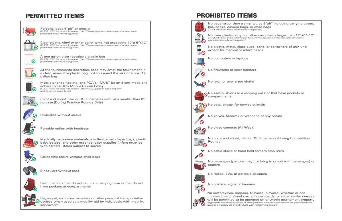 Okay, that's a drastic comparison, but The PLAYERS does have a very clear bag policy and list of prohibited items. Make sure you don't show up at the gate with things that shouldn't be on your person or you'll be sent back to your car to leave it behind (trust me, after a day at the TPC, you won't need those extra steps).