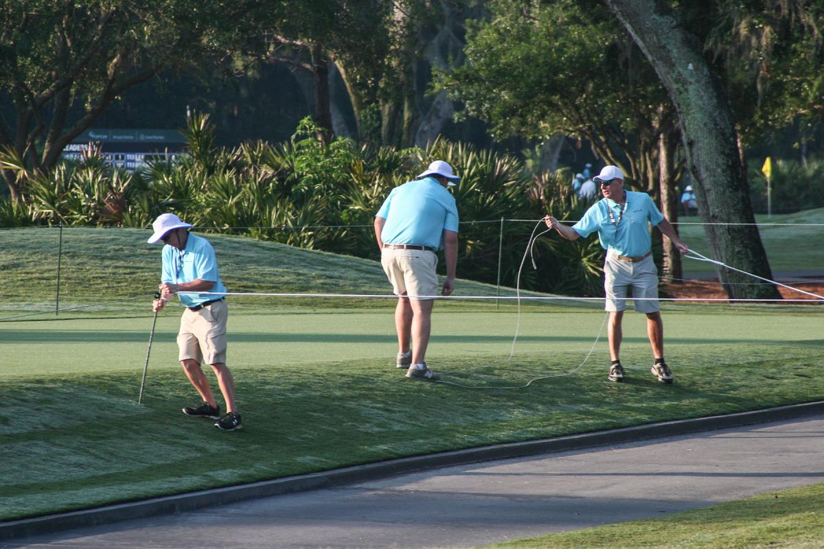 In general, listen to the directions the volunteers give you -- especially when it comes to navigating the course. A series of ropes are set up, and in order to allow the competitors and their caddies to move from one hole to another, the volunteers will temporarily move the ropes to open up a new path. When this happens, wait behind the line until they've said it's okay to pass again.