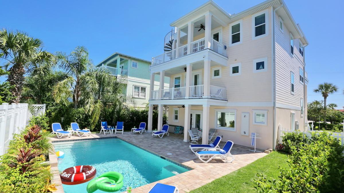 For fun, in addition to the beach that's accessed just 450 feet from the door, this home offers a back patio and pool, a ground floor lounge and bar area, and a two-car garage that holds foosball and ping-pong tables. The home is on quiet F Street, which is just a bit more than five miles from Historic Downtown St. Augustine and all of the attractions and restaurants visitors enjoy.