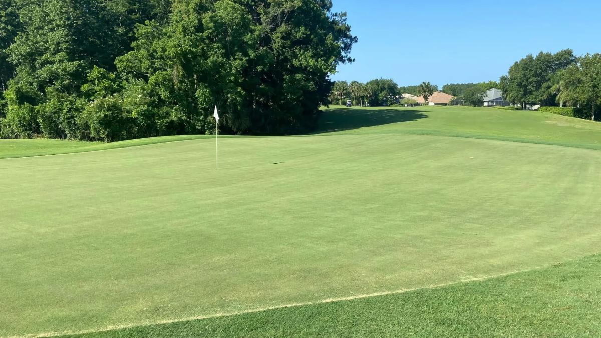 The 18-hole, 6,529-yard golf course provides a challenge to both experienced players and beginners, with long fairways, well-placed bunkers, lakes, and large greens, all surrounded by the scenic beauty or Northeast Florida.
